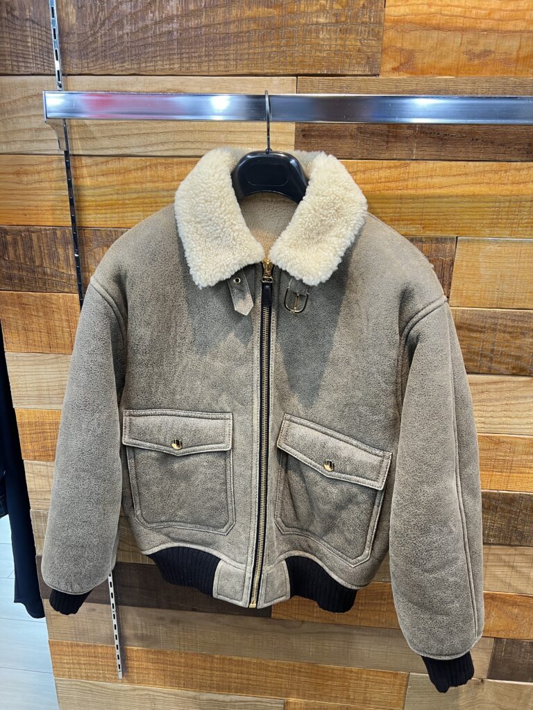 ตัวเสื้อมาในโทนสีน้ำตาลเทาแบบสุภาพ ให้ความรู้สึกอบอุ่นแต่แฝงไปด้วยความดิบเท่จากเนื้อผ้าหนังกลับ (suede) ที่ดูมีมิติและสัมผัสนุ่มสบาย เพิ่มลูกเล่นด้วยปกคอขนสีครีม ช่วยเสริมลุคให้ดูหรูขึ้นทันทีที่สวมใส่