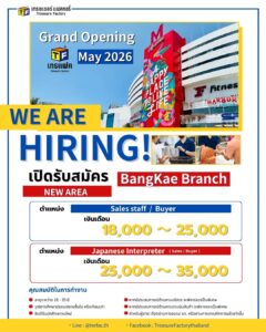 ในโอกาสนี้ เรายังเปิดรับทีมงานที่มีใจรักงานบริการ มาร่วมเป็นส่วนหนึ่งของ Treasure Factory สาขาใหม่ไปพร้อมกัน