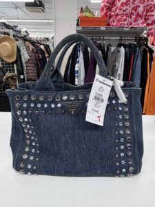 กระเป๋า PRADA เดนิมตกแต่งหมุดโลหะ ดีไซน์โดดเด่น