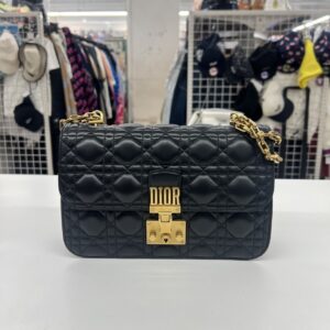 รุ่นฝาปิดทรงยาวอย่าง Dior Caro มาในสีดำพร้อมฮาร์ดแวร์สีทอง เพิ่มความหรูแบบร่วมสมัย ดีไซน์ดูเรียบแต่ทรงพลัง